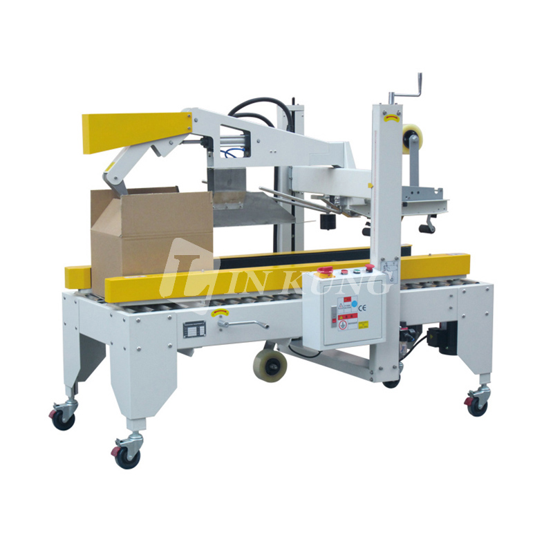 胶带封箱机主要是用在纸箱的打包封箱包装,可以单独的工作,还可以与其他设备联合在一起组成包装流水线配套使用,近几年已经广泛应用于家用电器、纺织、食品、百货、医药、化工等行业。更是在轻工业的发展中起到了一定的促进作用。一般的封箱机经济快速、容易调整,可自动地完成上、下的封箱动作在提高产品形象的同时还可以提高企业的自动化包装程度。