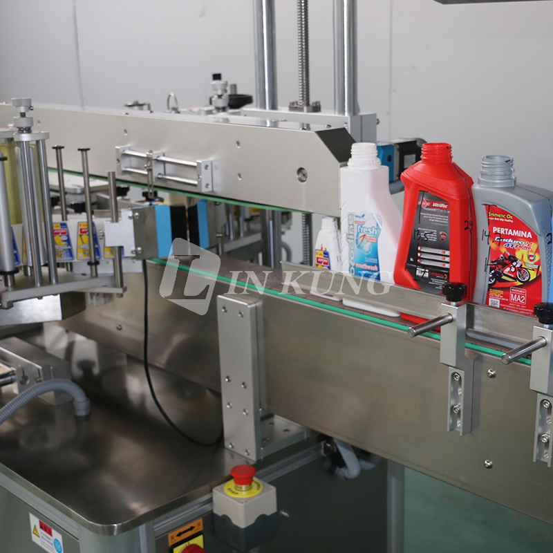 全自动单侧面贴标机属于侧面贴标机,适用于扁瓶、圆瓶、方瓶的单侧面贴标,如洗发水扁瓶,润滑油扁瓶,洗手液圆瓶等单侧面贴标。全自动贴标,提高生产效率,广泛应用于日化、化妆品、石化、医药等行业。